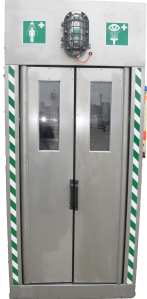 Application area: Hot and cold climate Material: – frame: stainless steel – valves: stainless steel/brass – tank: stainless steel – shower head: plastic or stainless steel Insulation: PIR. Boiler with hot water: from 350 l to 500 l. Frame with structural analyses according to current standard Power supply: 230 V/50 Hz (other power supply on request) Ex-protection: are suitable for operation in hazardous areas 1 & 2 Flushing times: at least 15 minutes Volume Water inlet: 1 ¼“ female Volume flow: 40 l/min Standard / 76 l/min with option Many available options on request